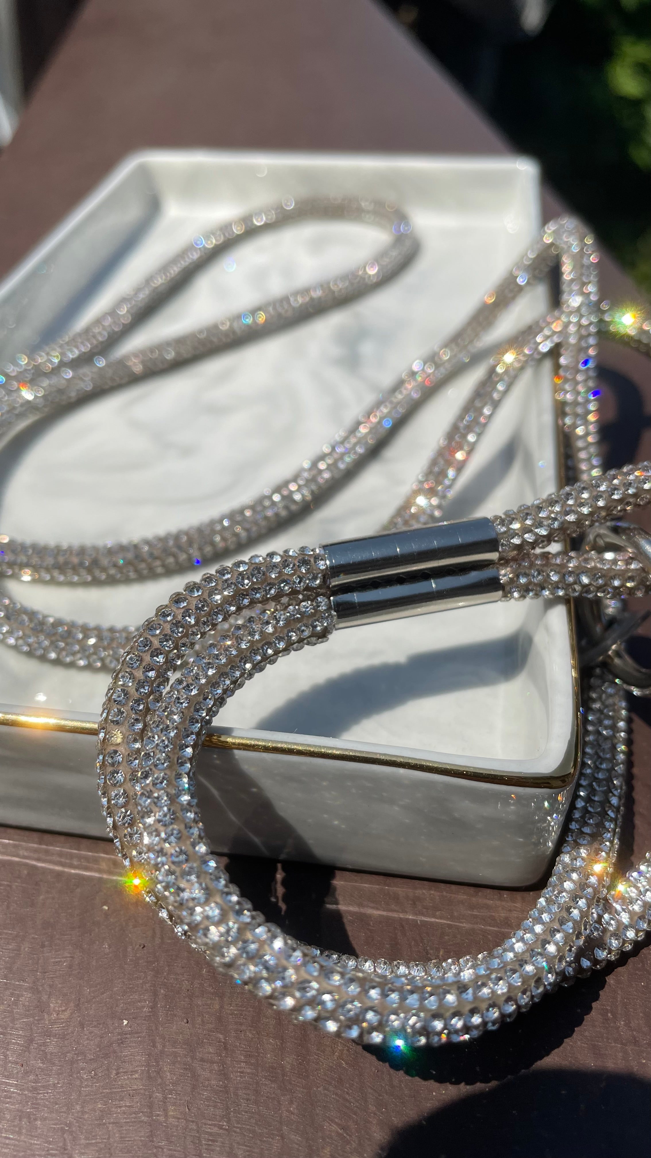 Die funkelnden Schmucksteine sind kunstvoll angeordnet und schimmern in einer Vielzahl von strahlenden Farben. Egal, ob du ein elegantes Abendkleid, ein lässiges Sommeroutfit oder einen Bikini trägst, unsere glitzernden Handyketten passen perfekt zu jedem Look und verleihen ihm sofort einen Hauch von Glamour.